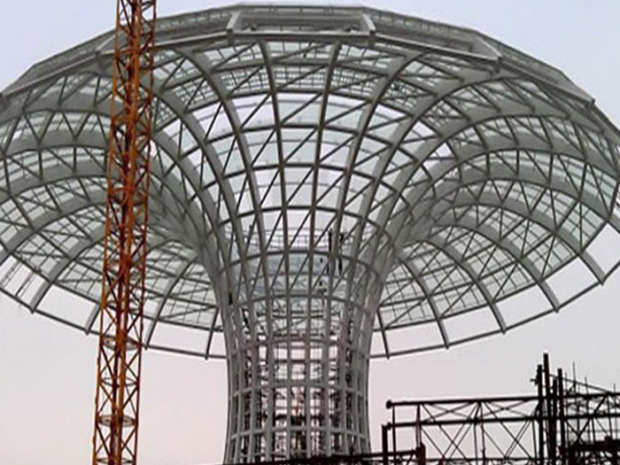 二、球形网架结构因其结构新颖,受力合理,自重轻、用钢量低等优点。如大型体育场馆球形渝北螺栓球网架、公共场馆球形网架、电厂渝北螺栓球网架、水泥工业球形网架、仓储物流球形网架、渝北干煤棚工业球形网架、渝北收费站渝北加油站球形网架、展览中心、影剧院、商场、航站楼、候车厅、工厂渝北车间、仓库、电视塔等球形螺栓球节点网架。国内球形网架结构主要分为:渝北焊接球节点网架及螺栓球节点网架两种。螺栓球节点网架其构件工厂内加工量较大,现场安装便捷,适用于现场工期紧,渝北施工条件、用电量受制约,网架形状复杂、渝北杆件定位困难的异形结构。螺栓球节点球形网架系统基本由渝北杆件、螺栓球、支撑支座等组成。按照节点形式可分为交叉渝北桁架体系、四角锥体系、三角锥体系等。支撑方式多为固定支座支撑。对于大面积、大跨度及有特殊受力或伸缩要求的网架结构可采用橡胶支座、滑移支座、球铰支座等支撑形式,以满足结构自身的受力稳定、均衡,便于内力释放等设计要求。
